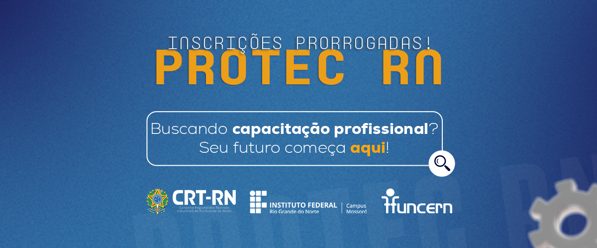 As inscrições para os cursos de qualificação do Programa de Capacitação dos Técnicos Industriais do Rio Grande do Norte (ProTec RN) foram prorrogadas. Nesta segunda-feira, 06, o Conselho Regional dos Técnicos Industriais do Rio Grande do Norte (CRT-RN), publicou o Edital de Prorrogação Nº 01/2026, que estende do prazo de inscrição nos ProTec RN até a quinta-feira, dia 09. A lista oficial de inscritos e selecionados será publicada no site do CRT-RN na sexta-feira, dia 10 de abril de 2026.